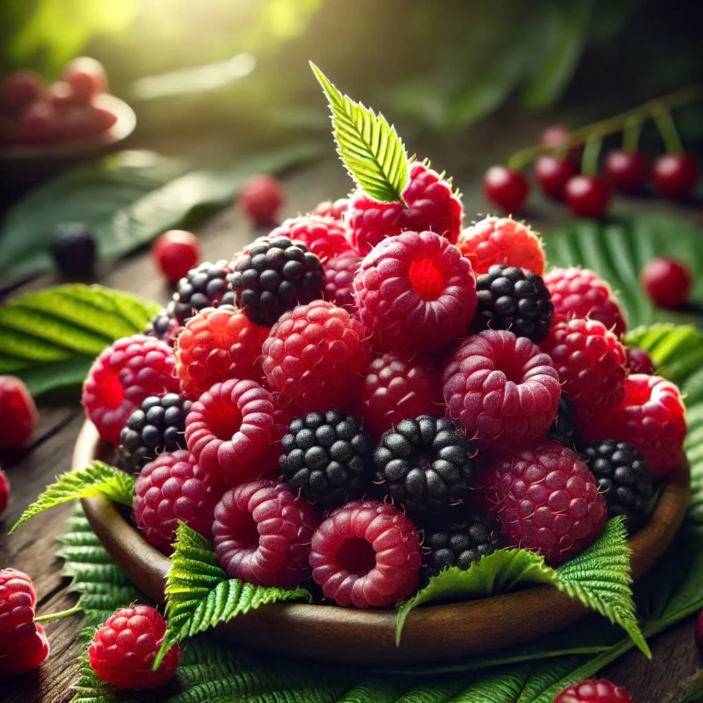 🍇 Phúc Bồn Tử, còn gọi là Mâm Xôi, là giống cây ăn quả độc đáo, dễ trồng, nhanh ra trái. Trái có màu đỏ hoặc đen khi chín, căng mọng, vị ngọt thanh pha chút chua nhẹ, thích hợp để thưởng thức tươi, làm mứt, sinh tố hoặc nước ép bổ dưỡng.